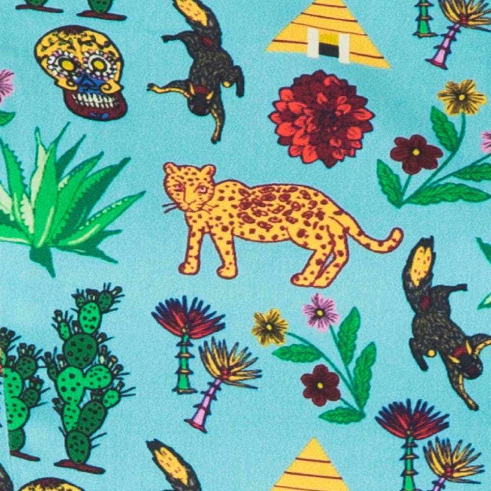 Jaguar Cactus print • Side POCKETS • Original artwork print by Sweven! • Soft Cotton blend with notable stretch • Just above the knee length • Concealed zipper in back • Sweetheart neckline • Foldover detail at bust • Fixed shoulder straps • Sleeveless • Gathered skirt • Cinched waistline • Sash set at hips to tie in front or back • The model is 5'7", and is wearing size Small.