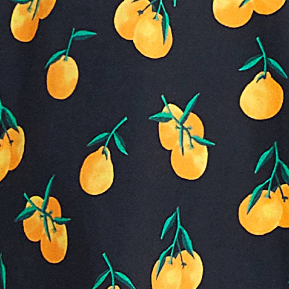 Mandarin Orange print • Side POCKETS • Original artwork print by Sweven! • Soft Cotton blend with notable stretch • Just above the knee length • Concealed zipper on left side • Off-Shoulder neckline • Short sleeves • Gathered skirt • Raised waistline • The model is 5'7", and is wearing size Small.