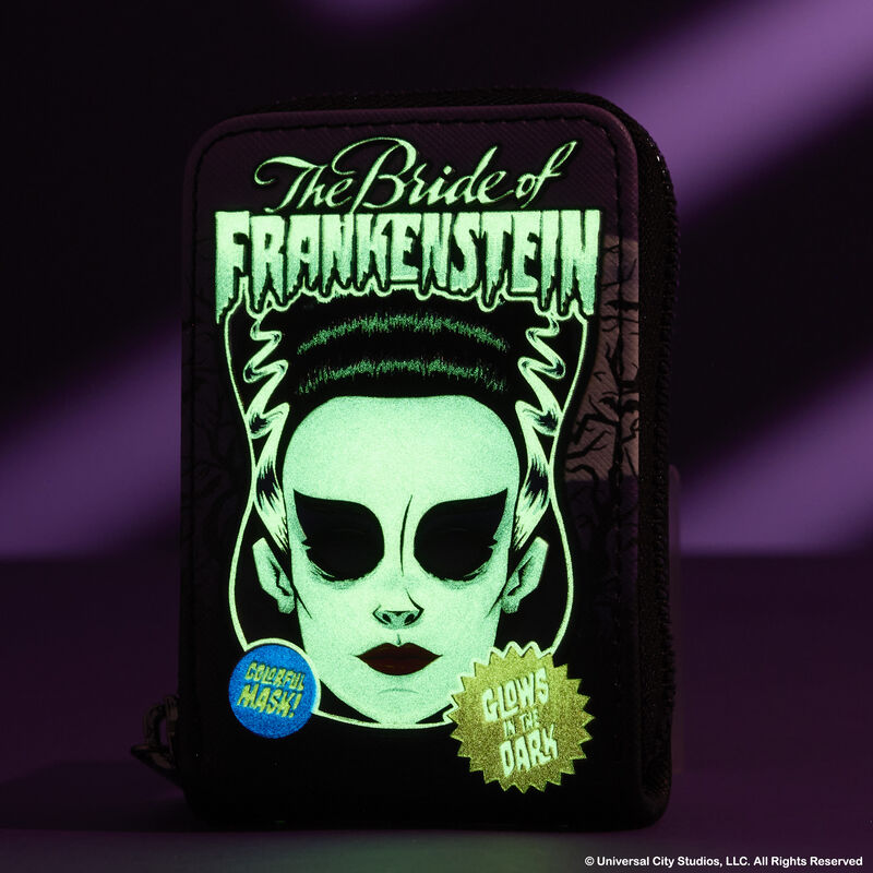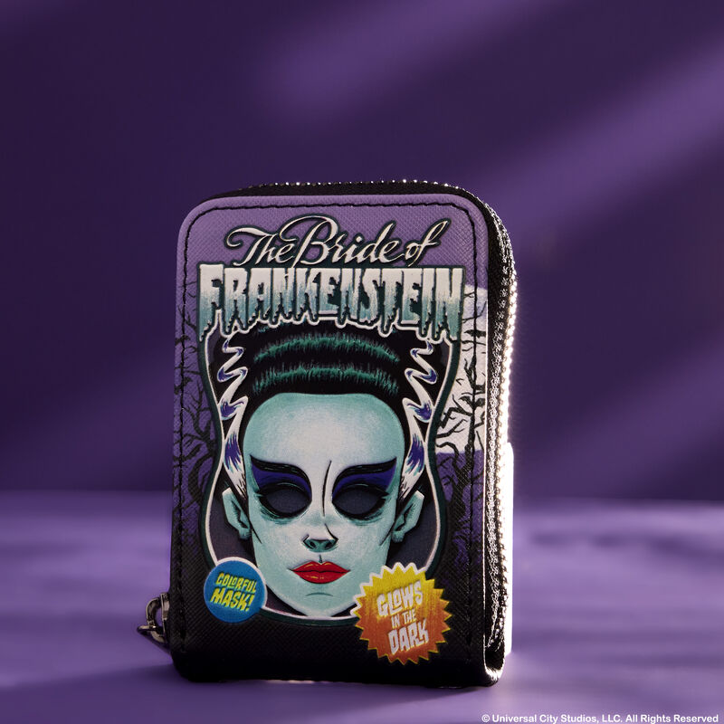 Universal Monsters Bride of Frankenstein Mask Glow Accordion Zip Around Wallet